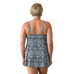 Plus Size A Shore Fit Garden Print Drawstring One-Piece Swim Dress