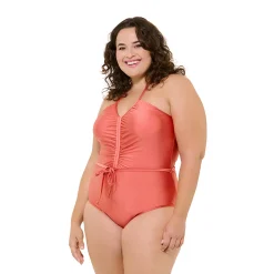 Plus Size Freshwater Ruched Tie-Front One-Piece Swimsuit