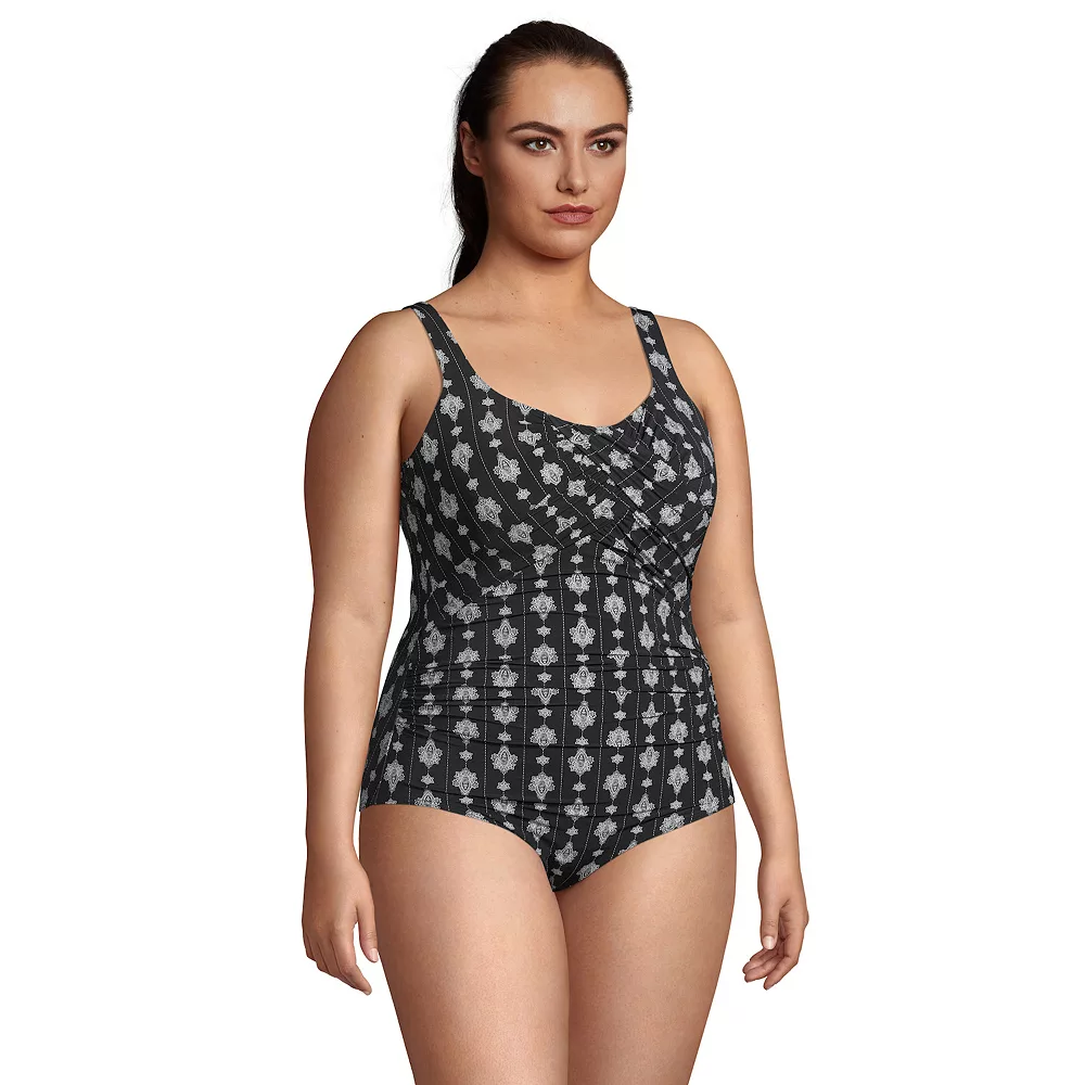 Smoothing, shaping SlenderTex design combines with a long lasting construction to make this women’s Lands’ End swimsuit a poolside essential.