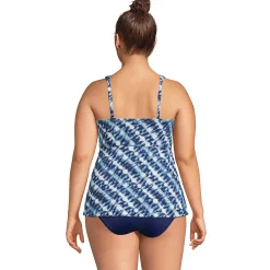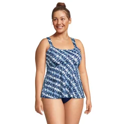 This flutter tankini from Lands’ End offers flattering and comfortable style.