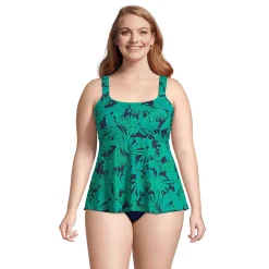 This flutter tankini from Lands’ End offers flattering and comfortable style.