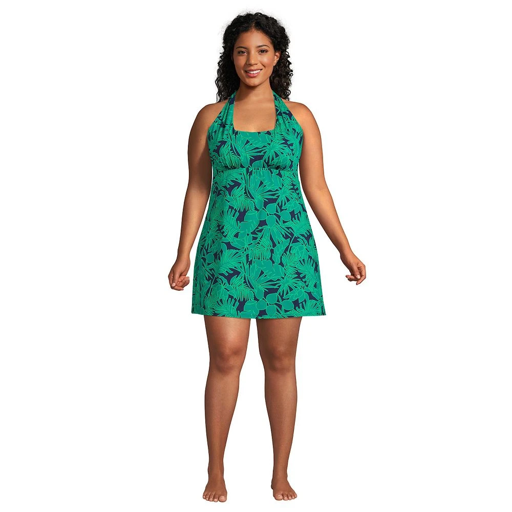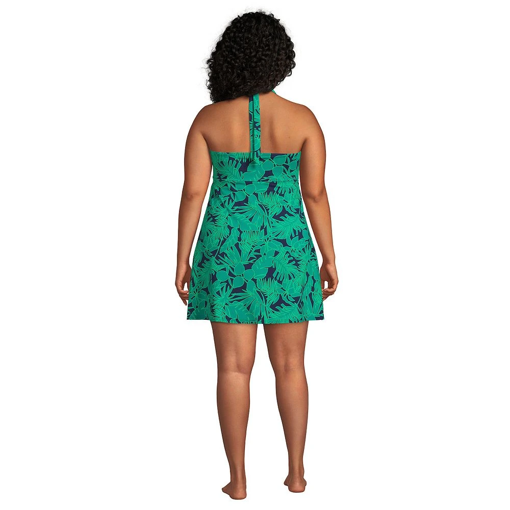 Soak up the sun by the pool or at the beach in this women’s one-piece swimdress by Lands’ End.