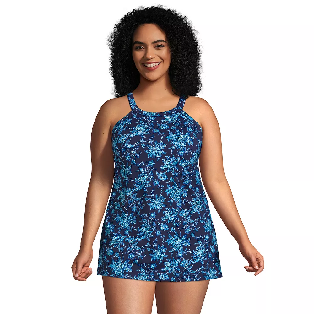 Take on any water activity in style with this women’s Lands’ End one-piece swim dress.