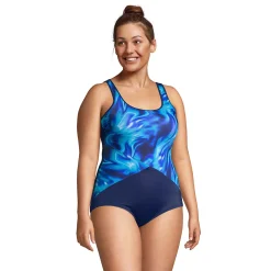 Long- lasting swim style and comfort is yours wearing this women’s Lands’ End Tugless one-piece swimsuit.