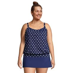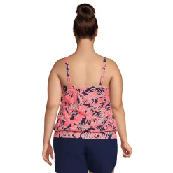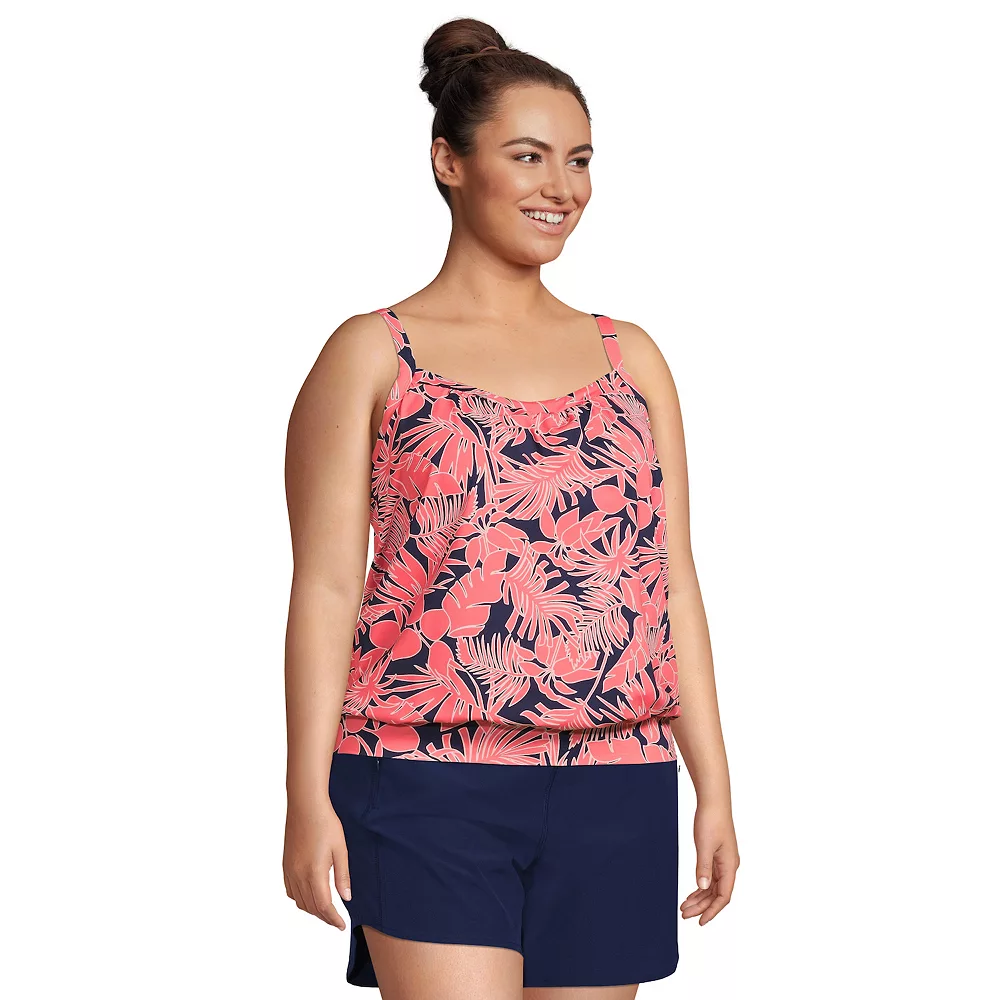 A flattering blouson design and UPF 50 sun protection give this women’s Lands’ End tankini top a lovely poolside look.