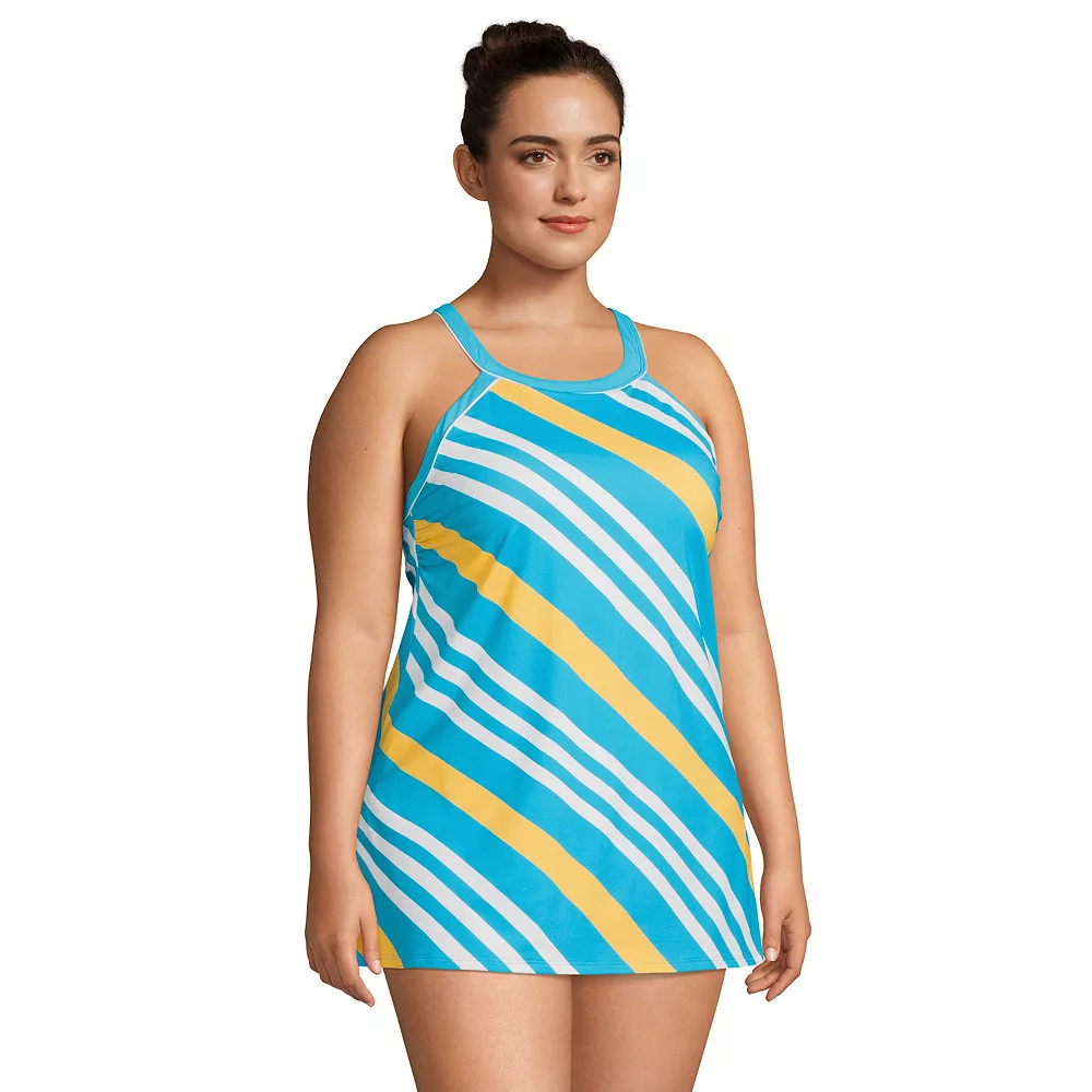 You’ll love the flattering, functional fit of this women’s Lands’ End high-neck swim dress.