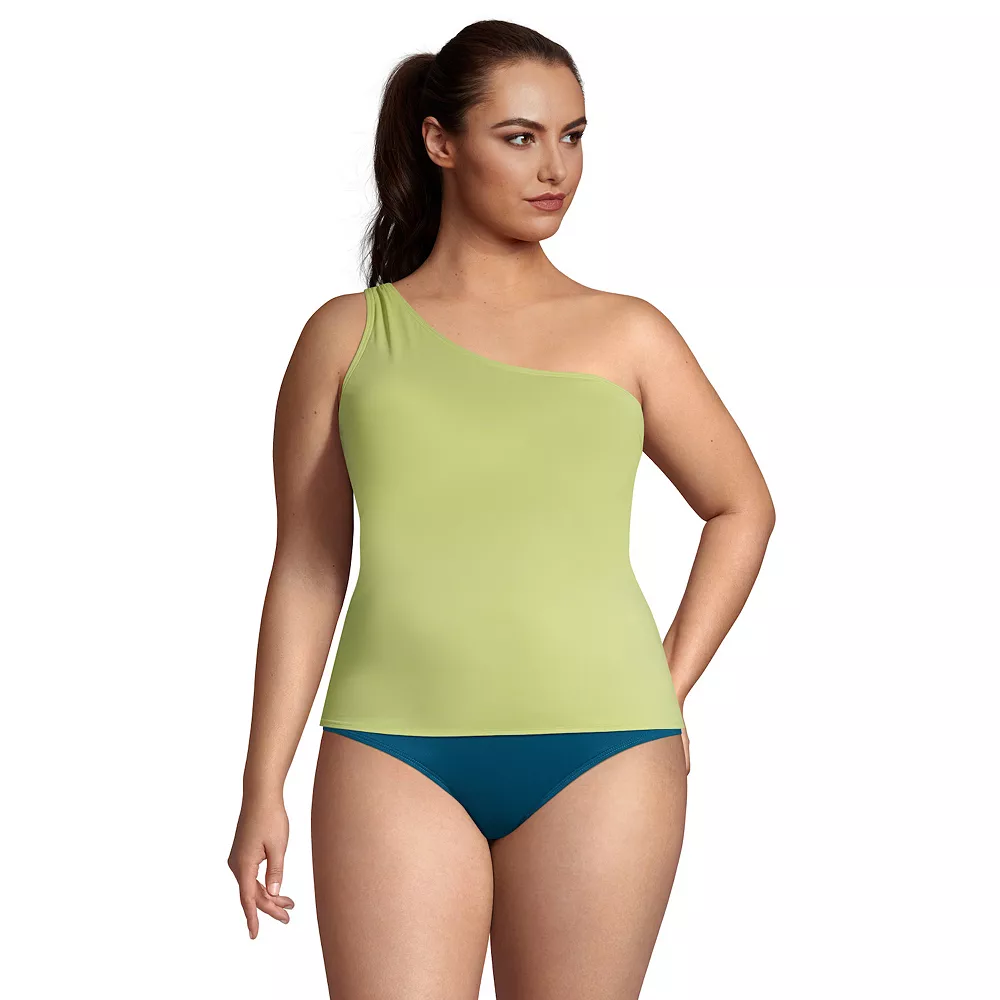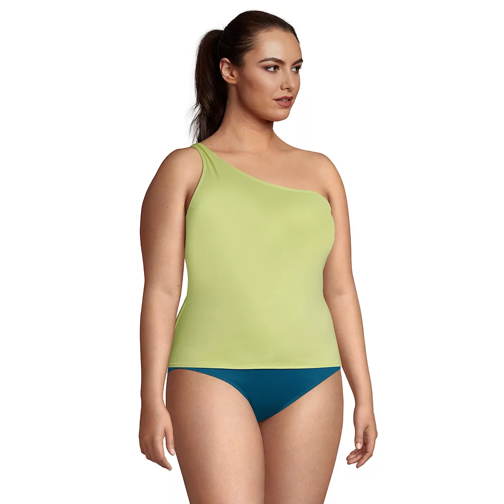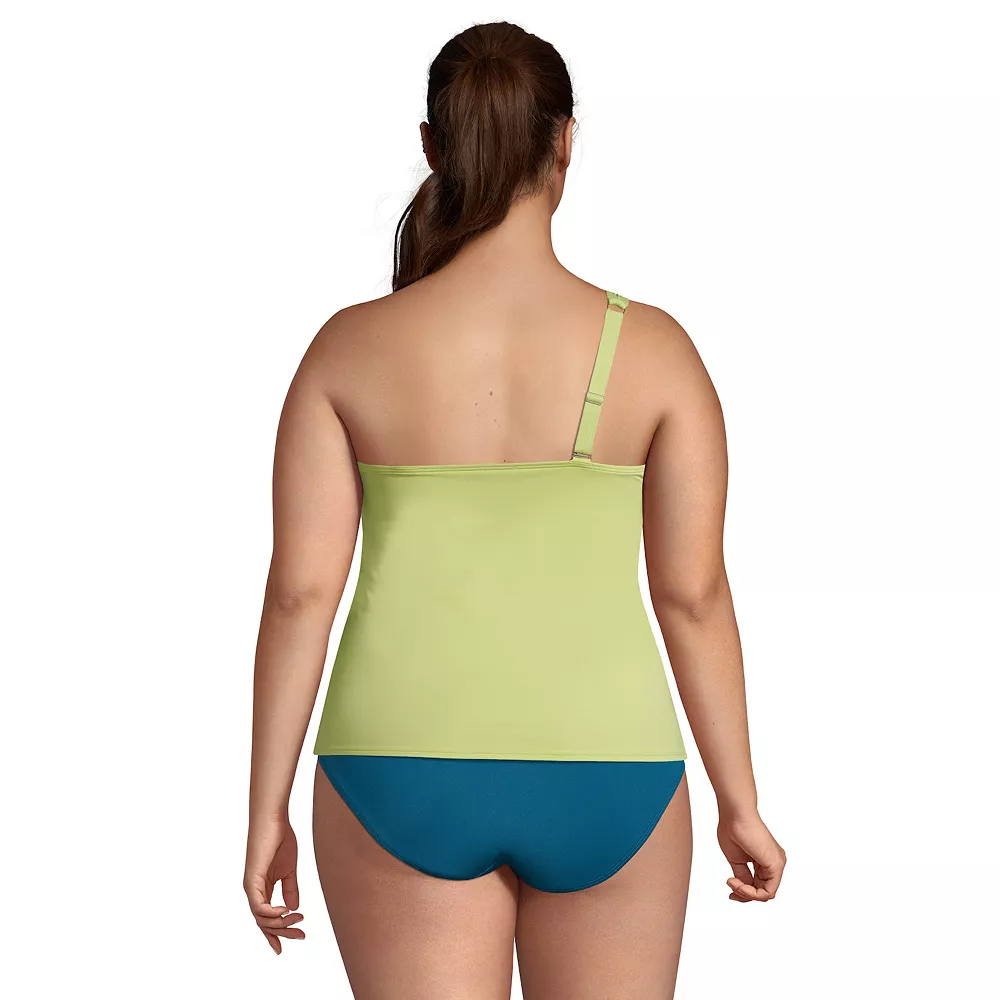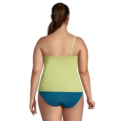 The one-shoulder, asymmetrical design of this women’s Lands’ End tankini top gives you versatile swim style.