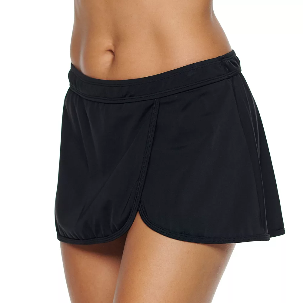 These women’s A Shore Fit skirtini bottoms are the perfect solution for your hips. Underneath is an attached panty with full coverage and moderate legline.