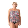 The handkerchief hem of this women’s A Shore Fit swim top makes it a great choice for pool or beach.