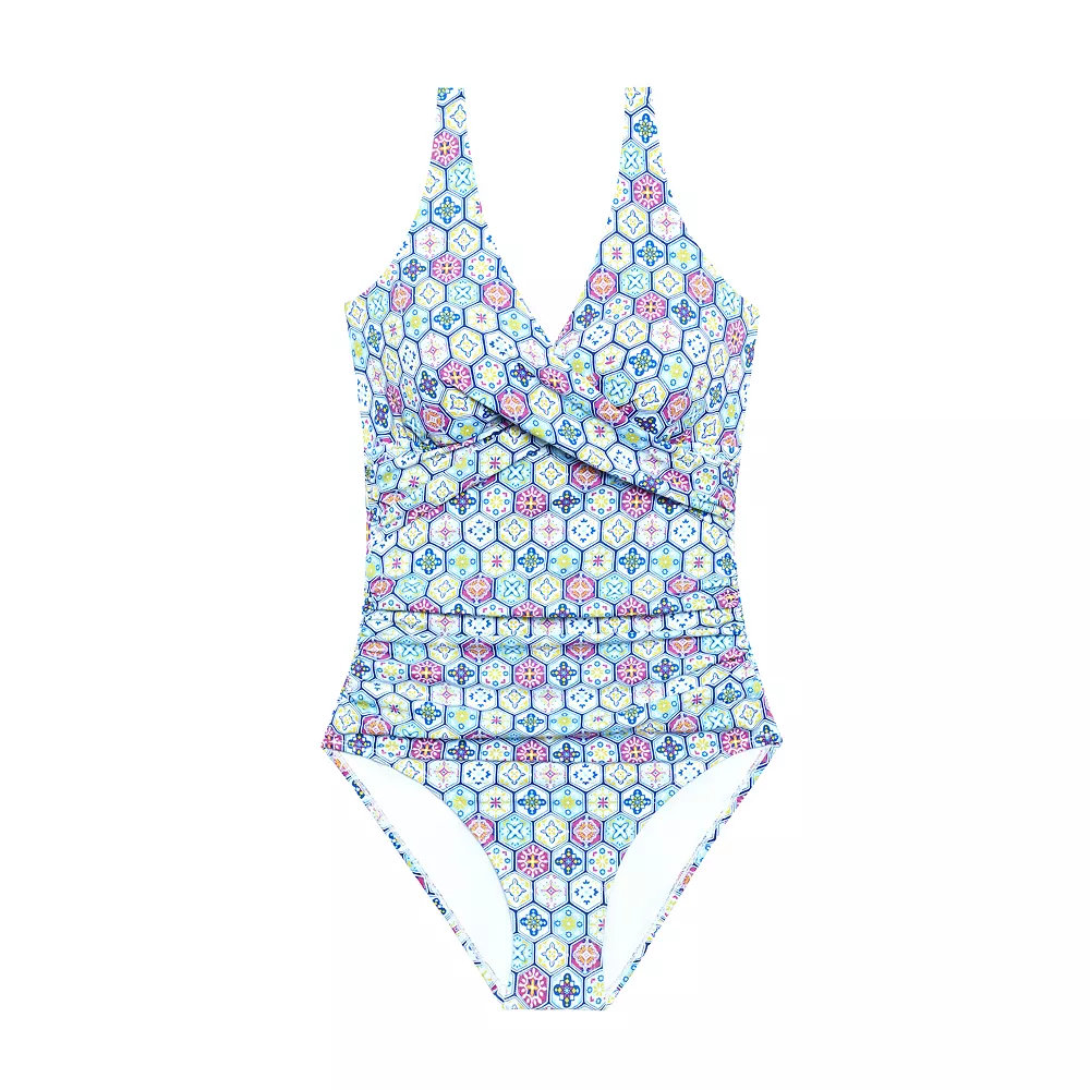 Splish and splash in style when you choose this women’s crossover one-piece swimsuit by Bal Harbour.