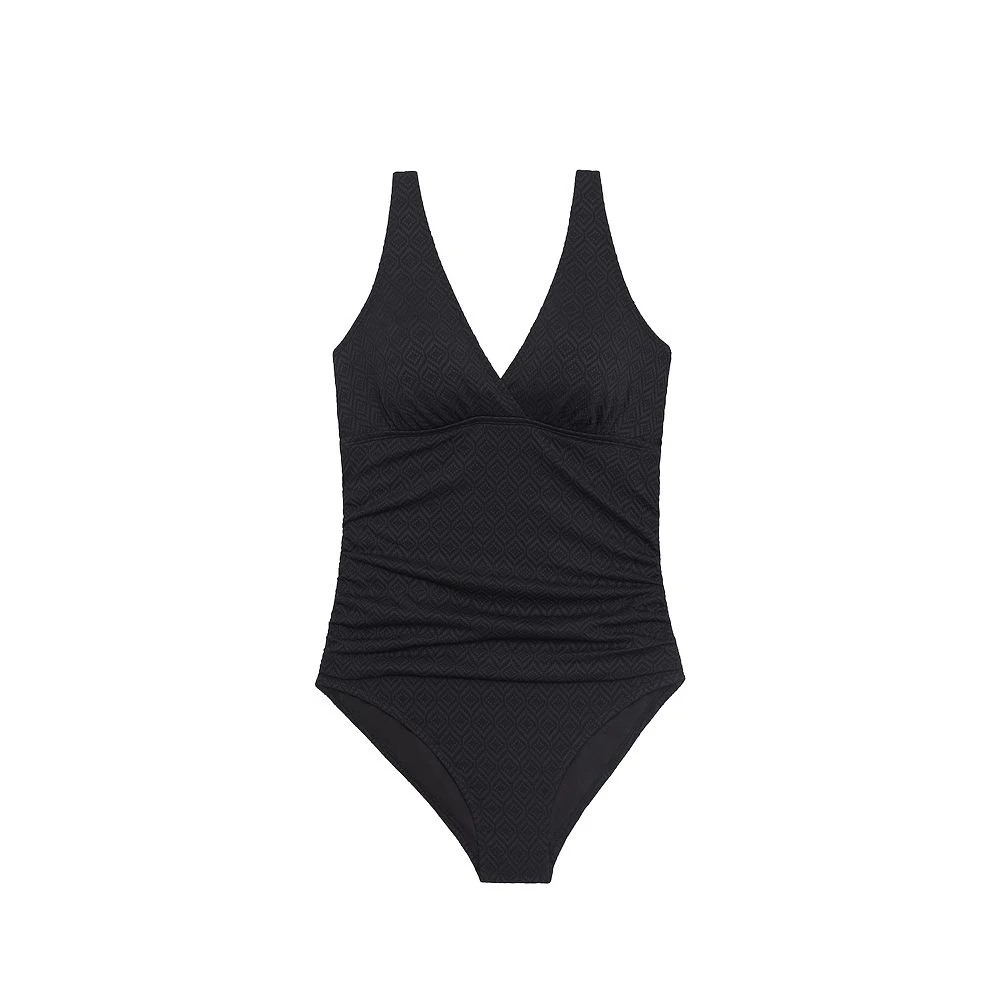Splish and splash in style when you choose this women’s plunge one-piece swimsuit by Bal Harbour.