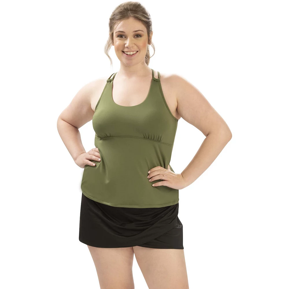 Soak up the sun by the pool or at the beach in this women’s tankini swim top by Dolfin.