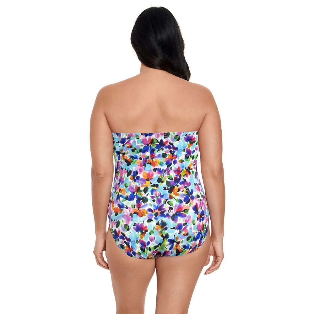 You’ll love the long torso fit, bandeau styling and colorful print of this women’s Great Lengths swimsuit.