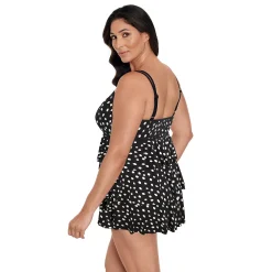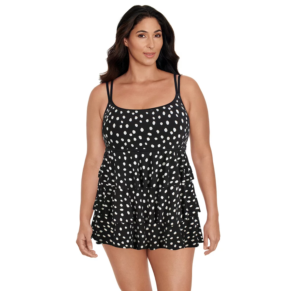 You’ll love the feminine, flattering fit of this women’s long torso swim dress from A Shore Fit featuring a triple tiered skirt.