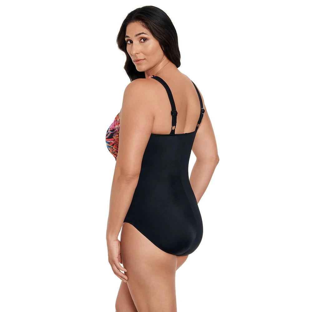 You’ll love the flattering. long torso fit of this women’s Great Lengths crossover halter swimsuit.