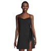 - A skirted leg cut falls just at the thighs to emphasize curves and offer a comfortable, all-day fit