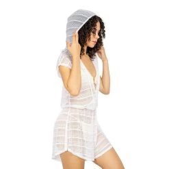 You’ll love the sheer, textured fabric and the romper design of this women’s swim cover-up by Jordan Taylor.
