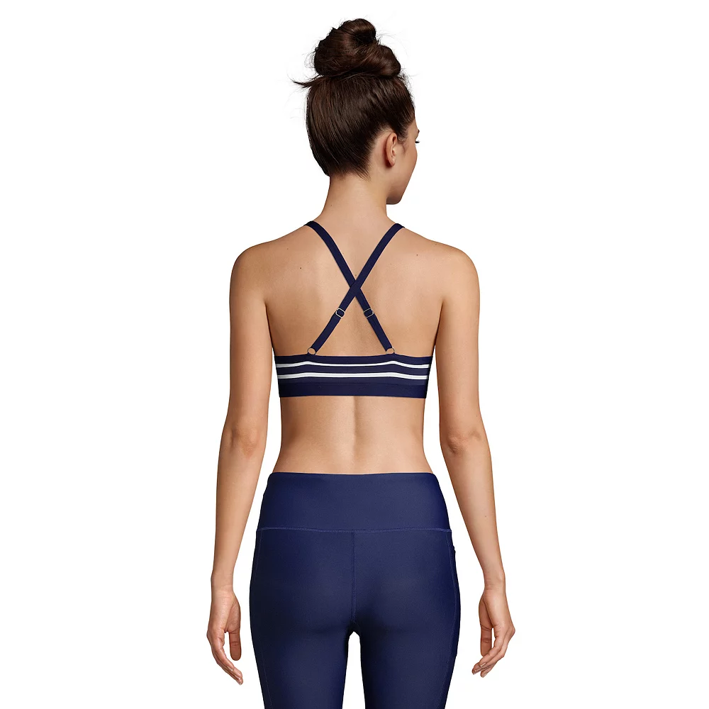 A high neckline and chlorine-resistant finish make this women’s Lands’ End bikini top a great choice for beach or pool.