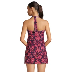 A halter neckline and UPF 50 sun protection makes this women’s Lands’ End swim dress a lovely choice for beach or pool.