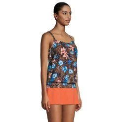 A flattering blouson design makes this women’s Lands’ End tankini top a great poolside choice.