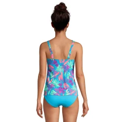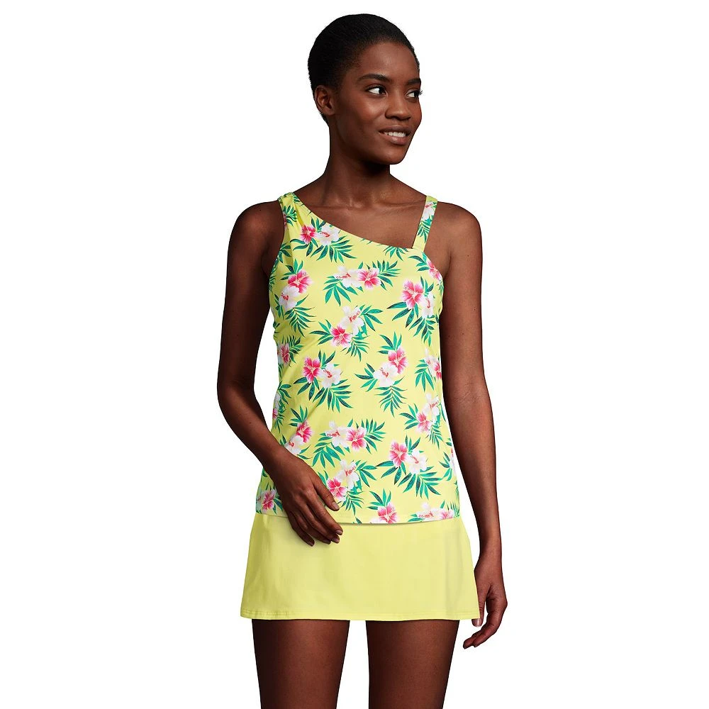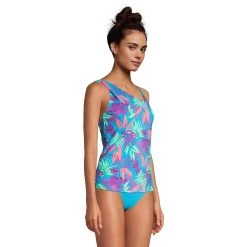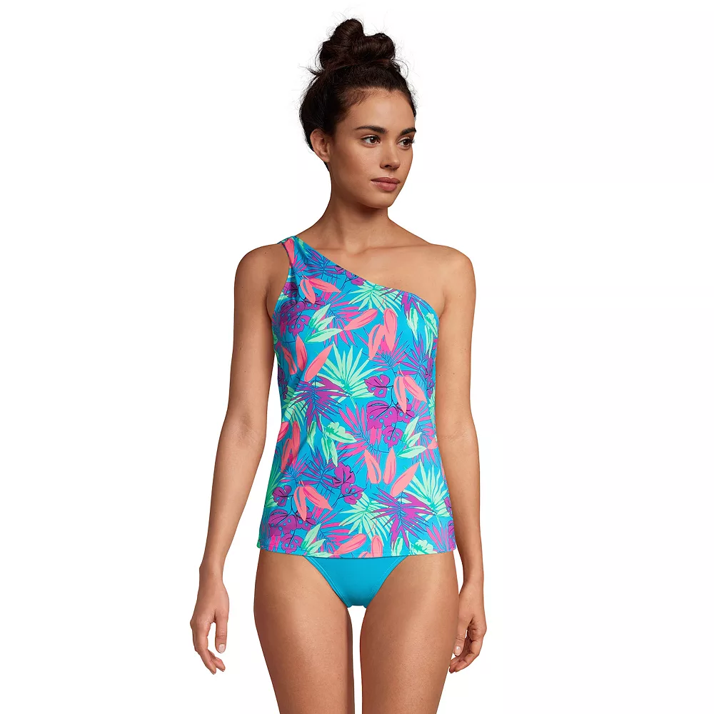 A one-shoulder design and UPF 50 make this women’s Lands’ End tankini top a great choice for beach or pool.