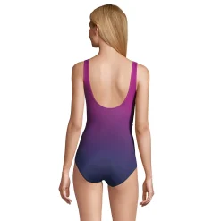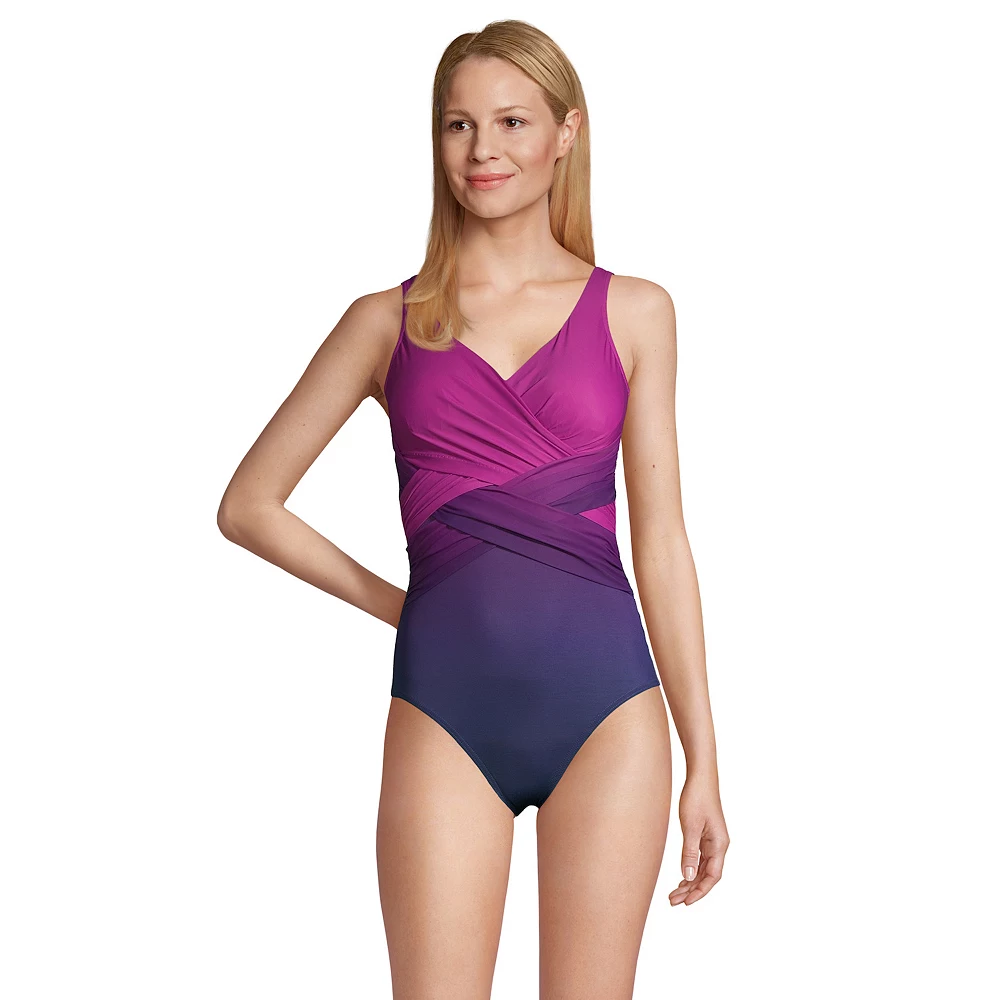 Smoothing, shaping SlenderTex design and a surplice neckline combine to give this women’s Lands’ End one-piece swimsuit a lovely poolside look.