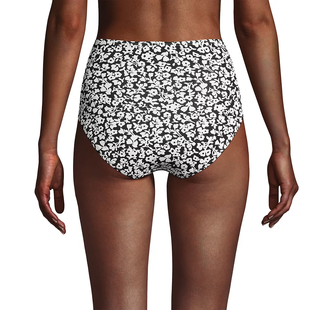 A retro-inspired, high waist design makes these women’s Lands’ End twist-front swim bottoms an excellent poolside look.