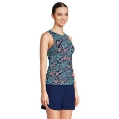 A high neckline and UPF 50 sun protection make this women’s Lands’ End tankini top an excellent choice for fun in the sun.