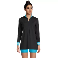 Protect yourself from the sun and surf with this women’s Lands’ End rash guard, featuring UPF 50 sun protection.