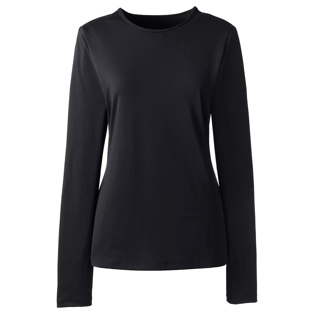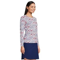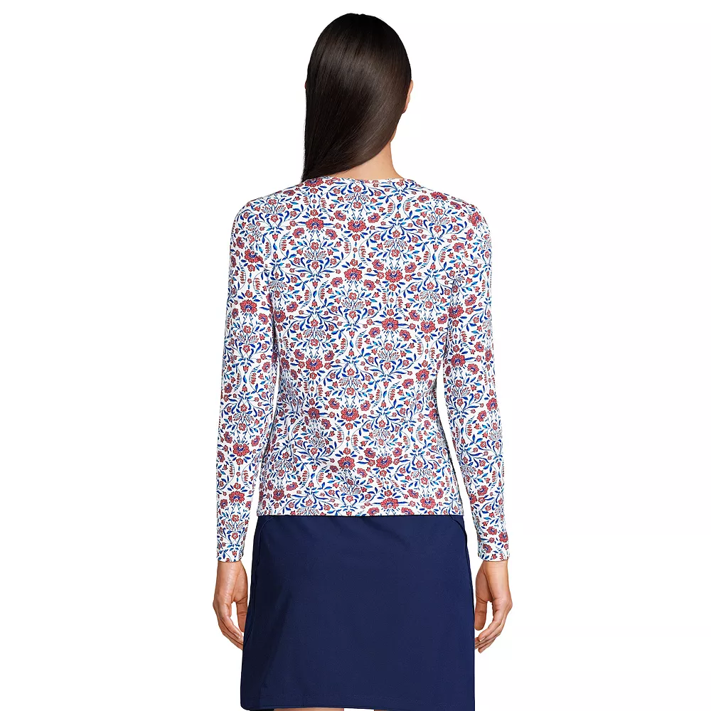 Protect your skin while you have fun in the sun wearing this women’s Lands’ End long-sleeve rash guard, with 50 UPF sun protection.