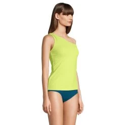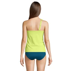 Update your water wardrobe with this women’s Lands’ End asymmetrical swim top.