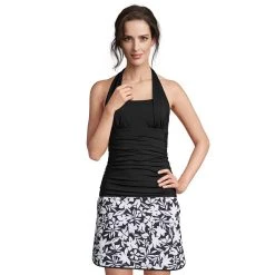 The adjustable halter neckline makes this women’s Lands’ End tankini top a swim staple.
